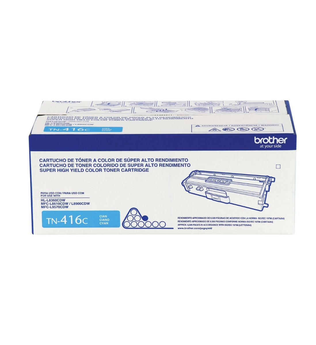 El tóner TN-416C cuenta con un rendimiento aproximado de 6.500 páginas al 5% de cobertura, lo que te permite reducir costos operativos y mantener una productividad constante. Además, Brother promueve el reciclaje responsable de sus cartuchos, reforzando su compromiso con el medio ambiente.