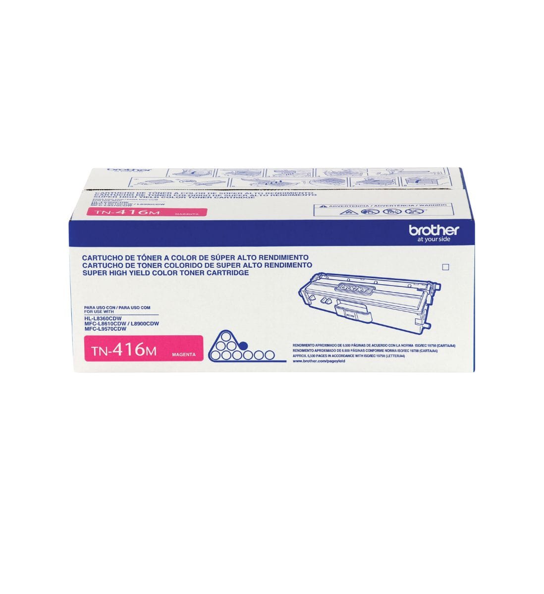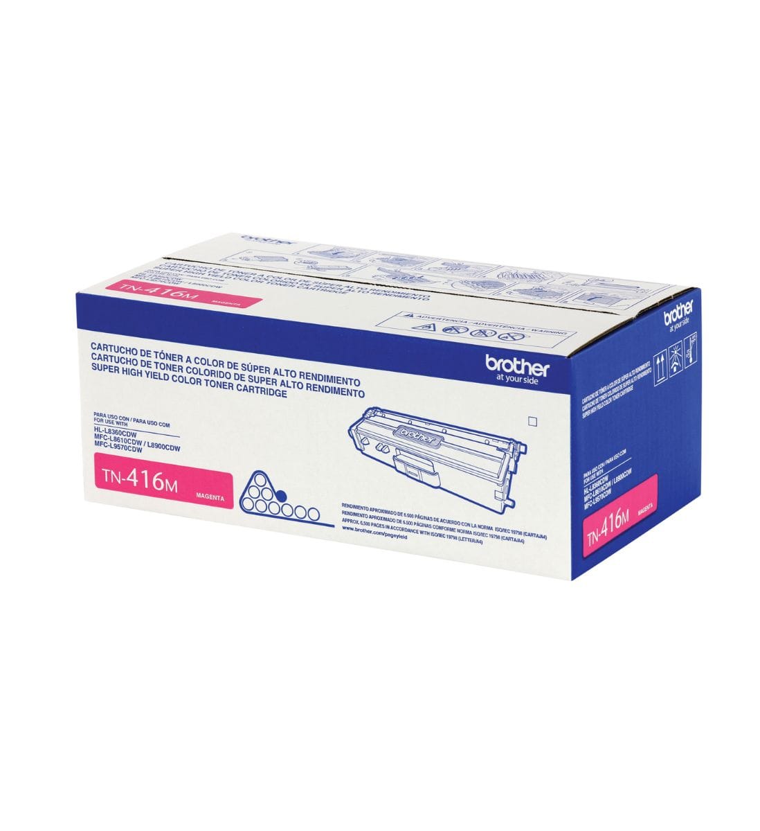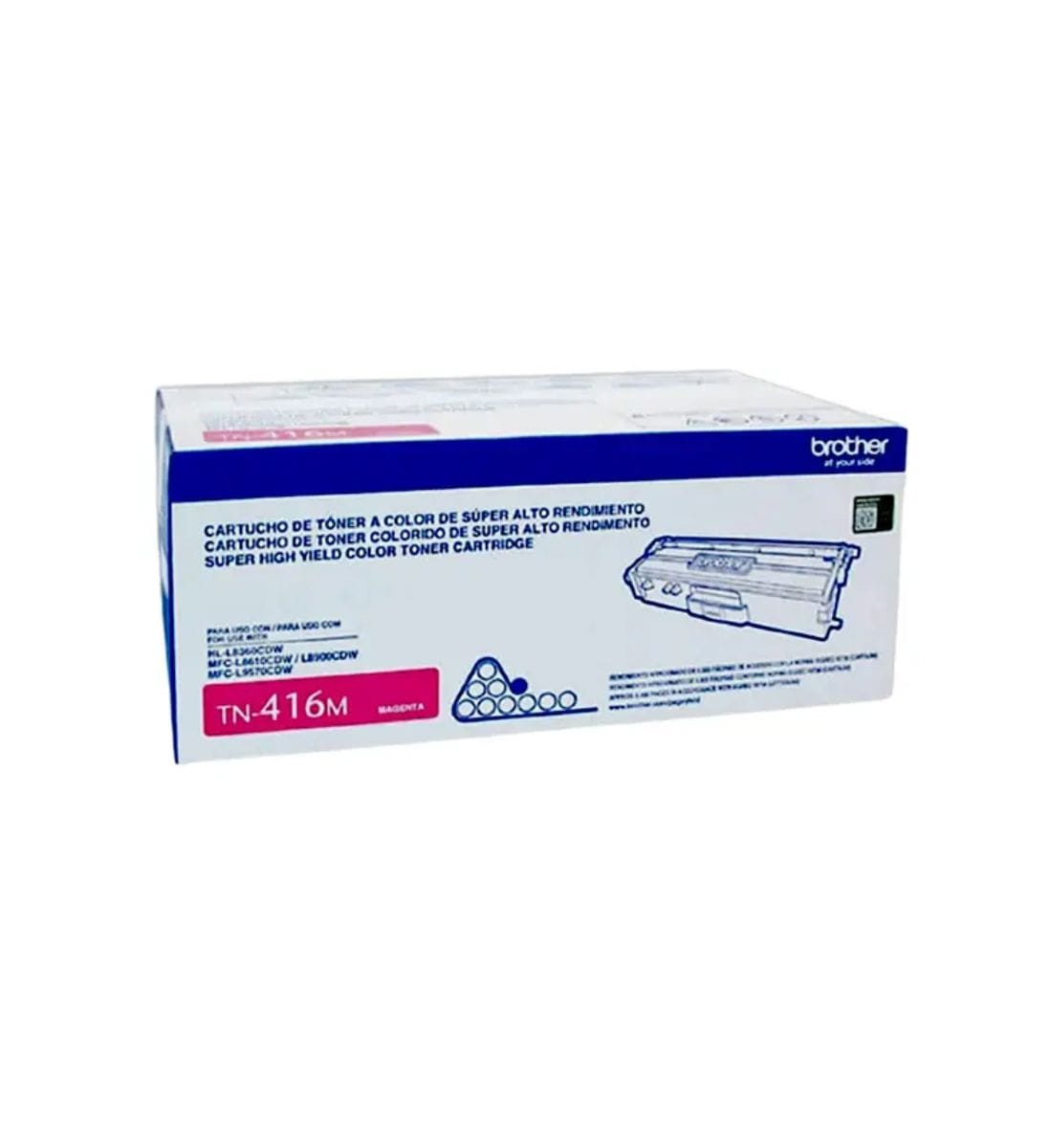 Una de sus mayores ventajas es su compatibilidad total con impresoras Brother profesionales, lo que garantiza una instalación rápida, sin complicaciones ni residuos. Al utilizar consumibles originales Brother, tu equipo mantiene un desempeño óptimo y una mayor durabilidad, evitando fallos comunes de impresión como manchas o desalineaciones. El TN-416M cuenta con un rendimiento aproximado de 6.500 páginas al 5% de cobertura, ofreciendo una excelente relación costo-beneficio.