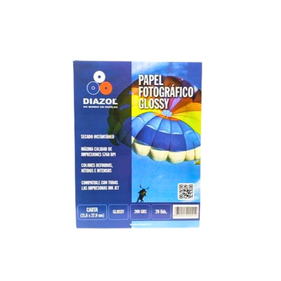 El papel fotográfico Diazol InkJet Glossy Carta 200 g/m² con 20 hojas ha sido diseñado para usuarios que exigen una calidad superior en sus impresiones fotográficas en formato carta. Su superficie rígida y de gramaje elevado (200 g/m²) asegura una textura firme y profesional, lo que permite manejar las hojas sin que se curven o deformen y garantiza una presentación impecable.